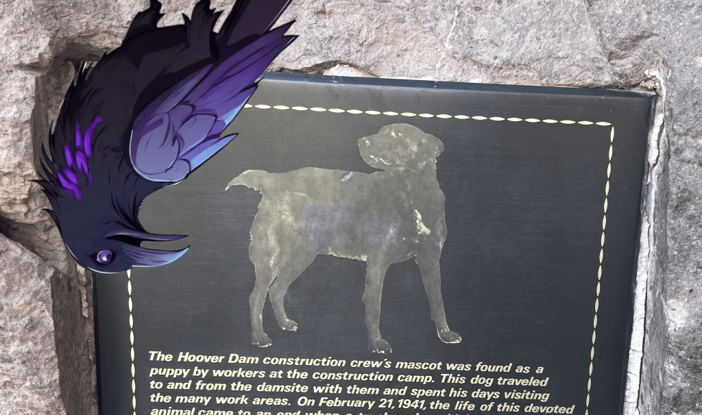 Wow. Squashed by a construction truck while napping! I guess there’s worse ways to go, but the Hoover Dam Dog’s story isn’t exactly Lassie material is it?